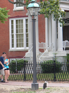 While waiting in line to get into the Governor's Palace at Colonial Williamsburg, the gate usherette in full colonial costume started explaining what constitutes a woman's attire during colonial times. I was astounded at how many layers of garments they wore back then. I couldn't believe that a woman would be wearing a hat, a cape, a cloak, a mob cap, a shift, sleeve ruffles, stays (corsets), etc. all in one outfit. I kept thinking how constricting and hot would that have felt.